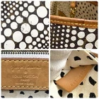 The Louis Vuitton Polka Dot Neverfull MM Yayoi Kusama Tote Bag Shoulder Bag is a medium-sized shoulder bag crafted from MonogramCanvas with a white exterior color and gold hardware accents. This tote bag features a unique Kusama Waves pattern design in white, making it a stylish and fashionable choice for women. The bag has a practical medium size with a width of 12.5 inches, a depth of 6.5 inches, and a height of 11.5 inches, making it comfortable to carry. With its fabric lining in ivory and classic Louis Vuitton branding, this bag is a versatile and chic accessory for any outfit. Has peeling on interior pocket see photos and dirty inside