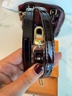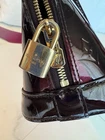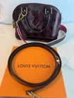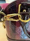 This limited-edition Alma BB is a dream! The gorgeous purple striped vernis leather catches the light beautifully, and the two included straps make it so versatile. The rolled handles, brass hardware, and clochette add elegant details, while the interior is practical with handy pockets. Despite minor wear, it looks nearly flawless—perfect for adding a pop of luxury to any outfit. The compact size is ideal for essentials without feeling bulky. A true collector’s piece!