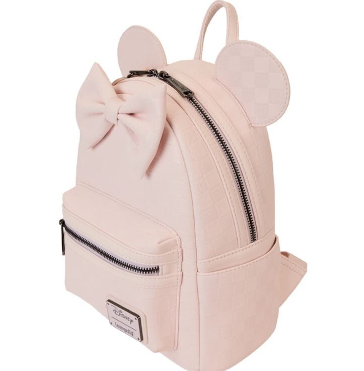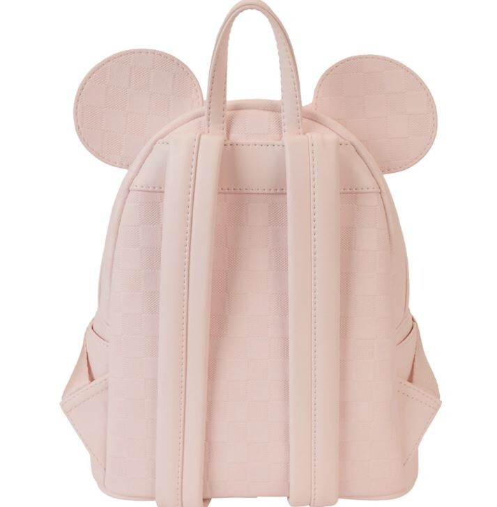 You can’t beat the classics – just ask Minnie Mouse! Keep things casual with a mini backpack designed to fly under the radar. With a sleek checkerboard design and subtle callouts to the mouse herself, this accessory shows off just the right amount of flair while playing things cool. · Features: · Vegan leather (polyurethane) · Adjustable shoulder straps · Front zipper pocket · Side drop pockets · Vegan leather zipper charm · Gunmetal hardware · Applique, debossed, 3D bow, and printed details · Coordinating inside lining · Dimensions: · 9”W x 10.5”H x 4.5”D This backpack is an officially licensed Disney product.