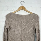 LOFT Off Shoulder Cable Knit Sweater Women's Size XS Beige Ribbed Wool Blend See measurements for accurate fit Shoulder To hem 23 inches Pit to pit 17 inches All measurements are done flat lay
