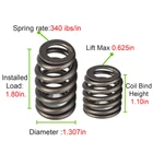 Feature: Number of Springs Per Valve: Single Coil Bind Height (in): 1.100 in. Damper Spring Included: No Recommended Valve Lift: 0.625 in Install Load: 135lbs Install Height: 1.800" Open Height: 1.175" Open Load: 348 lbs Spring Rate (lbs/in): 340 lbs./in. Inside Diameter of Outer Spring (in): 0.885 in. Valve Spring Style: Beehive Fitment: For All LS Engines - .625" Lift Rated. LS1, LS2, LS3, LS6, LQ4, LQ9, 4.8, 5.3, 5.7, 6.0, 6.2, Silverado, Sierra, Camaro, Corvette, TBSS, CTS-V, GTO, LM7, GM Truck... Package Including: 16x Beehive Valve Spring The these valve springs are great as replacement parts--or for pushing above and beyond the performance of OEM engines. Select them when you're upgrading camshafts or doing engine rebuilds.