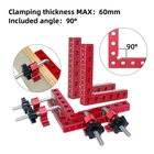 【Premium Material】Made of aluminium alloy, it will lasts for years. Anodized red surface, durable and resistant to corrosion, rust prevention. 【L-Type Design】L-Type positioning square, with accurate metric/inch scale and different fixing holes, is convenient for you to measure length, position, etc. 【Easy To Use】Beveled edges, Perfect 90° Corners, easy to handle and will not damage the fragile cutting edges, just place a square on the corner of the two stock pieces to square and secure with a set of clamps. Excellent ergonomic design for gripping power which can help to set up quickly, providing you a comfortable and safe using process. 【Wide Application】This Carpentry right angle jig set designed to be clamped to boxes, picture frames, drawers,frames, shelf cabinets, 90 degree weld and for outside corners. Practical DIY tool to make your woodworking project easier. 【What You Get】4* Positioning Squares and 8* Clamp Hooks