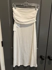 Elevate your wardrobe with the L*Space Manaia Dress, a stunning blend of style and comfort in a versatile cream hue. Crafted from luxurious modal material, this bodycon midi dress contours to your figure with a flattering fit, perfect for any occasion.The dress features a unique space-themed design that adds a touch of the avant-garde to your ensemble. Whether you're heading to the office or attending a casual gathering, this size medium dress is sure to turn heads and make a statement. Embrace timeless elegance with this contemporary piece from L*Space.
