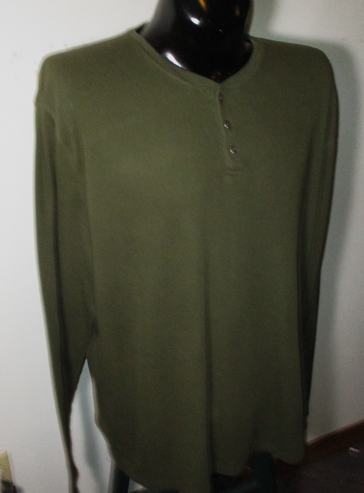 See my EBAY STORE at “SAMTPC53” to view 100’s more of my Men's SHIRTS!!! Combine Shipping: (on multiple items you pay full price on heaviest item first and then HALF PRICE shipping on ALL other clothes items. Men's Long Sleeve Henley Shirt. Brand: LUCKY BRAND. Description: men's LUCKY BRAND long sleeve Henley shirt, see pics Color: Green. Size: XXL (please see measurements). Measurements: 26" armpit to armpit, 32" shoulder to hem, 22" insleeve. Material: 60% Cotton, 40% Polyester. Condition: Excellent condition.