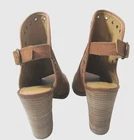 Complete your outfit with these Lucky Brand Lorillar brown leather booties. The peep toe and ankle strap closure make them perfect for any occasion, whether you're traveling, attending a wedding or cocktail party, or just going about your daily business. The stacked heel provides a comfortable 4" lift and the brass eyelets and studs add a touch of style. These Lorillar booties are made of leather and manmade materials, and have a solid pattern with a brown color. They come in a standard shoe width and size 8 US (6 UK, 38 EU). The Lucky Brand Lorillar booties are the perfect addition to any shoe collection!
