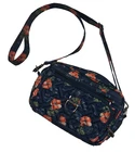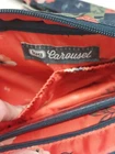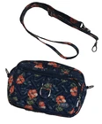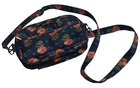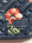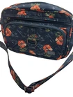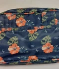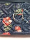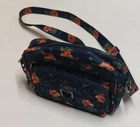 LUG Carousel Crossbody Convertible Handbag Navy Blue Hibiscus Aloha Floral. This convertible crossbody/belt bag is made with a lightweight, water-resistant quilted design fabric. It features an allover aloha print in coral, green and navy blue. Additional features include an adjustable removable strap, anti-theft RFID blocking, inner dividers, inner pockets, credit card/ID organizer, and multiple zippered outer pockets. Belt loops allow this crossbody to become a fanny pack. Approx. measurements are 9" X 6" X 3". Bag is in excellent pre-owned condition. There are just a couple of pen marks on the interior that are hardly noticeable. Ships USPS Standard Mail.