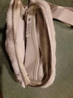 This Lululemon Belt Bag features a stylish design with a Bone White exterior color and Silver accents. The bag is made from cozy Fleece and luxurious Fur materials, giving it a unique and fashionable look. It is a versatile accessory in the Belt Bag & Fanny Pack style, perfect for on-the-go storage. The white handles/straps and hardware add a sleek touch to the overall design, making it a chic and functional choice for women looking to elevate their outfit with a statement accessory.