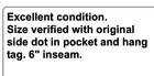 Excellent condition. Size verified with original side dot in pocket and hang tag. 6" inseam. THANK YOU EBAY!!! We are so thankful for our customers! We have thousands of listings, and therefore receive hundreds of messages, every single day. So, if you are asking about a price drop, or a shipping price drop, or asking for extra measurements, or to add additional photos, please allow me to answer you here, No thanks. If your question is not one of those questions, we will be happy to answer you individually. YES...WE DO COMBINE DOMESTIC SHIPPING. Extra jewelry items ship for $2 each (except for large jewelry lots). We will refund the difference as we are mailing out.....we hope you enjoy shopping with us! We encourage you to read the description and check all photos.