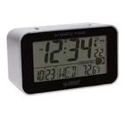 La Crosse Atomic Digital Alarm Clock Indoor Temp Moon Phase Travel Silver La Crosse Technology's Atomic alarm clock provides you with accurate Atomic time and precise real-time temperature data for your location. This blue backlight LED digital clock includes an Atomic calendar, indoor temperature and a dynamic moon phase tracker. Great for travel. Atomic self-setting time and date with automatic daylight saving time updates Time zone selectable (PT, MT, CT, ET) Temperature displays in Fahrenheit or Celsius Calendar: day, month, date 2 minute crescendo alarm 5 minute snooze Battery operated; requires 2 AAA alkaline batteries (not included)