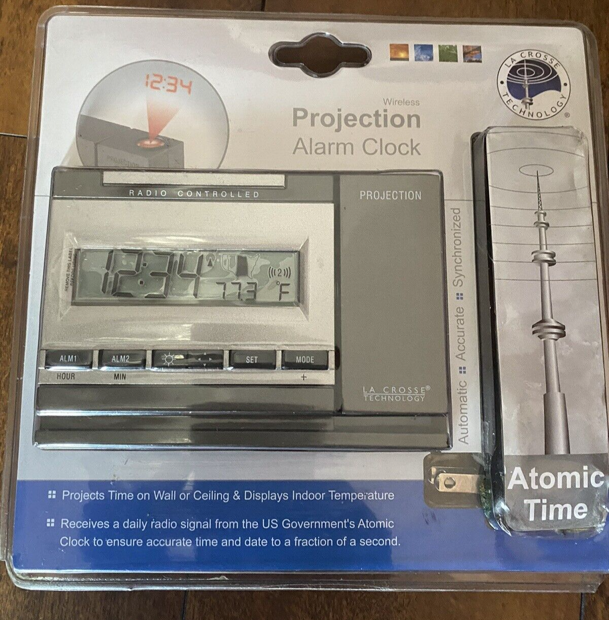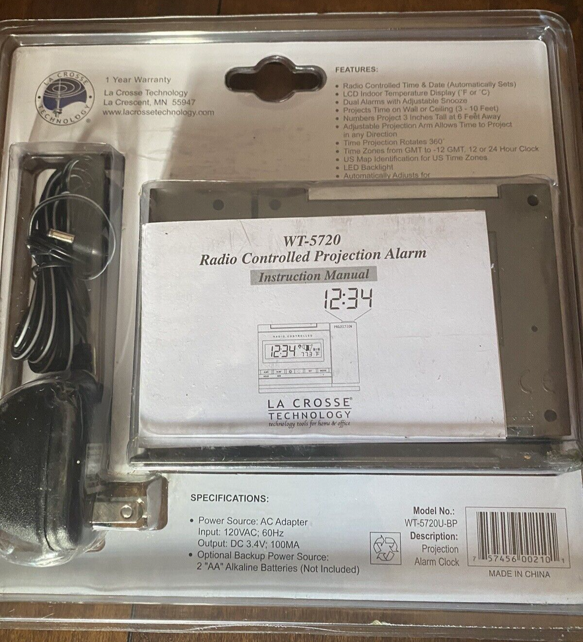 LaCrossee Technology Projection Alarm Clock Wireless, Model WT-5720 Radio Controlled Time & Date LCD Indoor Temperature Display Projects Time on Wall or Ceiling(3-10 feet) Automatically Adjust for Daylight Savings time and Leap Year.