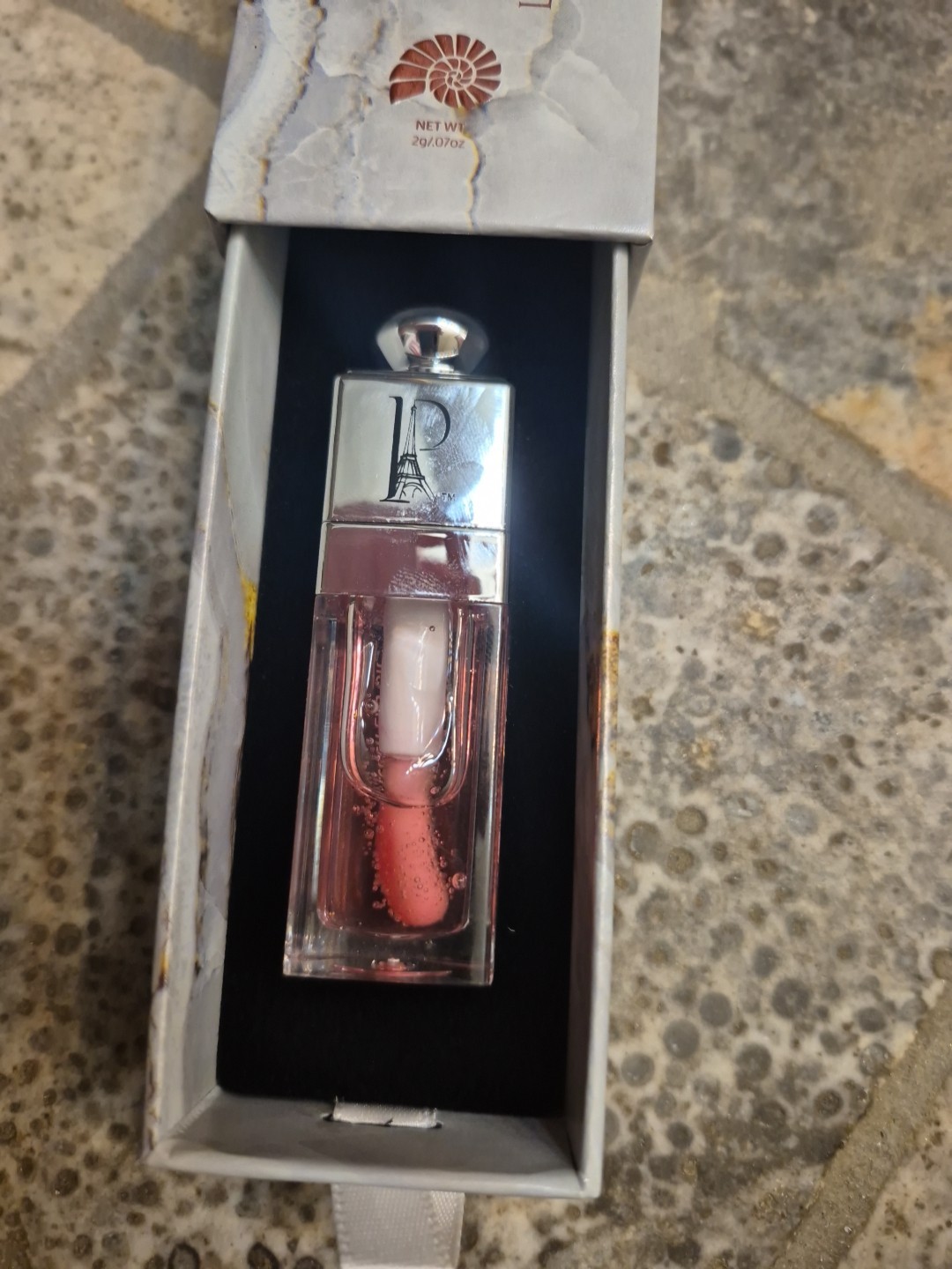 The La Predire Prestige Paris Awakening Glow Lip Oil is a luxurious lip oil designed to provide intense hydration and nourishment. With a peach shade and shiny finish, this lip oil adds a subtle glow to your lips while keeping them moisturized. The 0.2 fl oz size and standard packaging make it convenient to use and carry around, perfect for keeping your lips looking healthy and shiny all day long. retailed at $120
