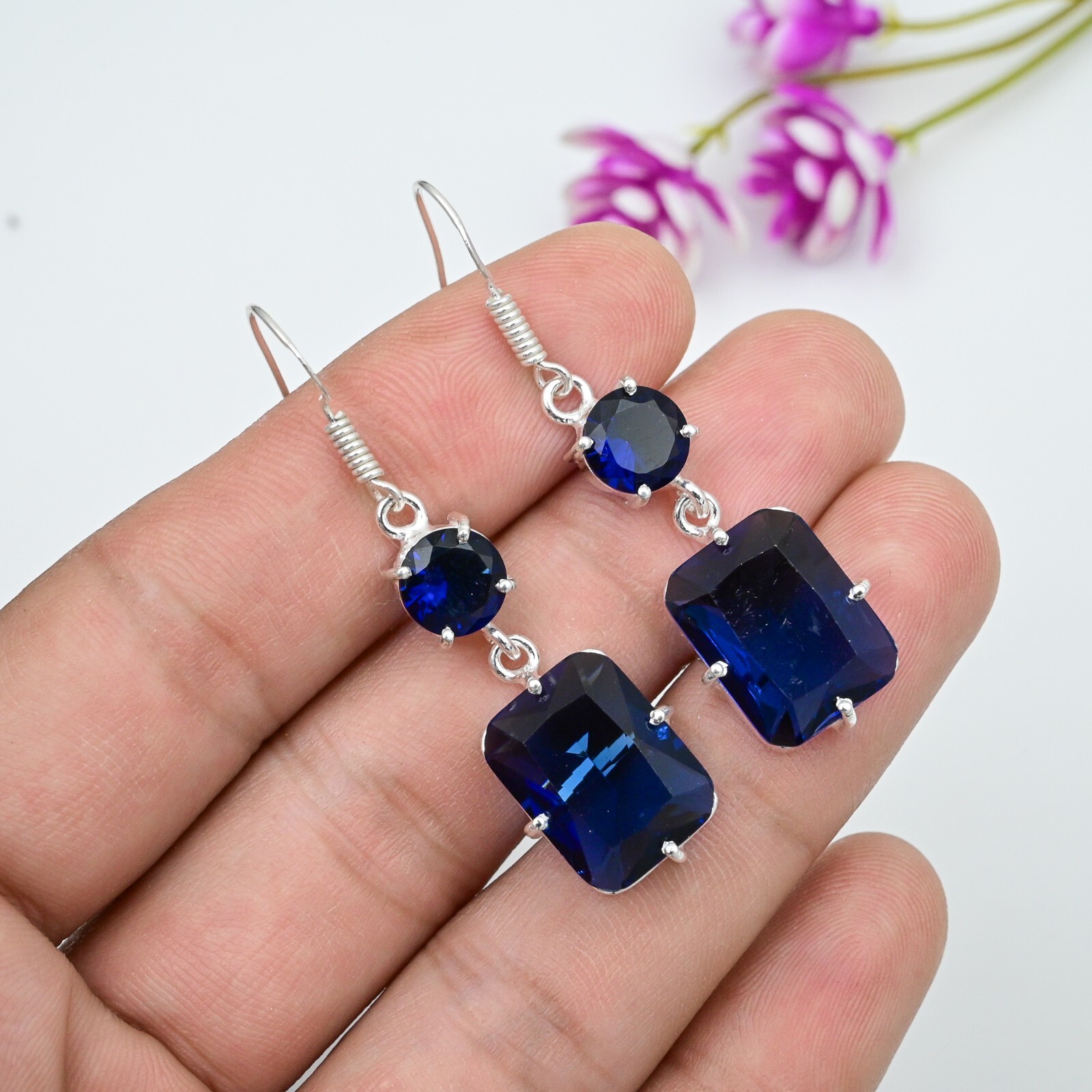 Lab-Created Blue Sapphire Sterling Silver Handmade Earrings