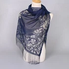 $ 7.9270% Cashmere 30% Silk Blue Line Print Double Face Wrap Scarf 68x68cm