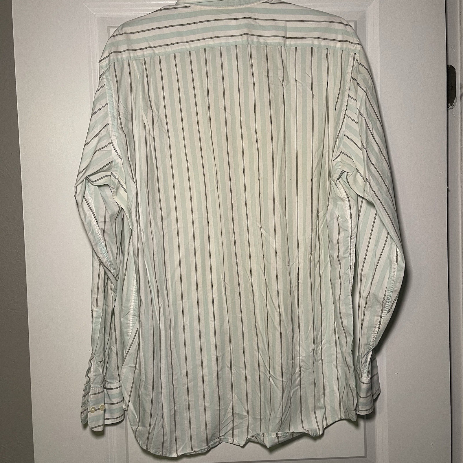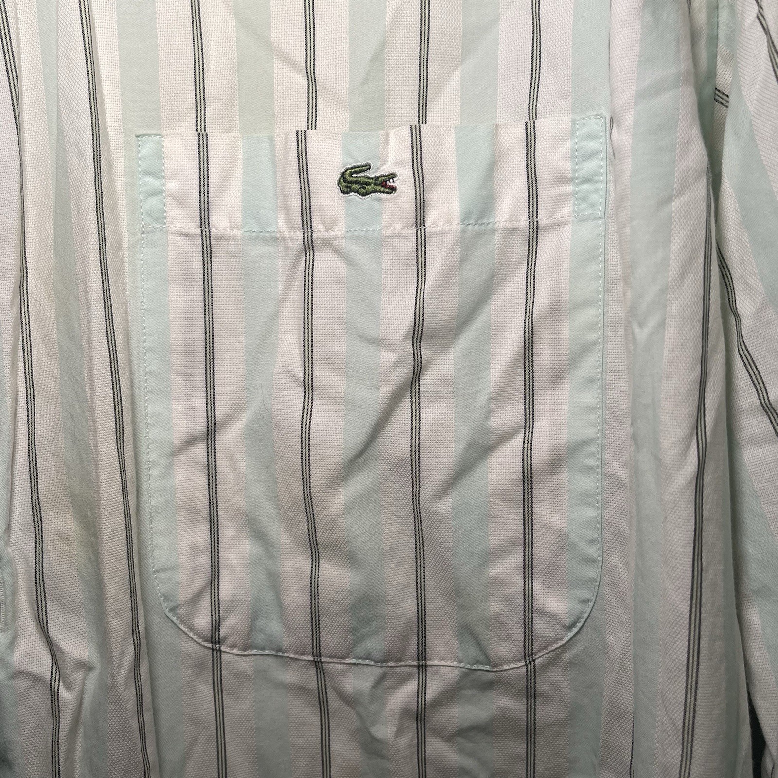 The Lacoste Men's Long Sleeve Button-Up Shirt in size 44 is a classic and versatile piece perfect for casual occasions. Made from comfortable cotton material in a stylish green striped pattern, this shirt features a collared neckline and button closure. With a regular fit and a chest size of 44 inches, this shirt is machine washable and includes convenient pockets. The timeless button-up style and woven fabric make it a wardrobe staple for any season.