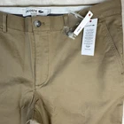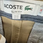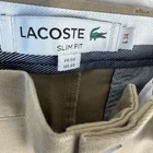 Lacoste Slim Fit Beige Khakis in size W40 L34 feature a flat front, 5-pocket design, and a slimming fit. Made of 100% cotton, these chinos are suitable for casual occasions and have a Golf theme. The pants have a mid-rise and straight leg style, with a subtle logo accent on them. Ideal for all seasons, these versatile pants are machine washable.