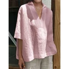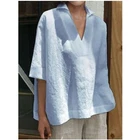 45160 T-Shirts Ladies Baggy Size Casual Cotton Top Linen Plus Womens Tops Blouse