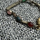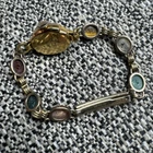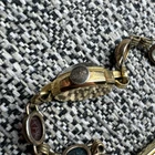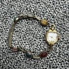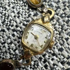 This vintage ladies' wrist watch from Bulova is a stunning piece that will surely catch your attention. The gemex band features a beautiful multicolor main stone made of multi gemstone, set in 14k yellow gold filled metal. The watch is signed Bulova and is 18k gold filled and the watch works perfectly. The watch is an original piece from the 1960s, made in the United States, and is perfect for any occasion, whether it's for Mother's Day, Christmas, Graduation, Anniversary, Birthday, or Valentine's Day. The watch has a vintage look and is an ideal choice for those who love beauty, art, animals, insects, fashion, and costumes. This Bulova watch is a must-have for any jewelry collection.