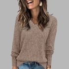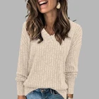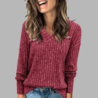 Product Features: Sleeve Length:Long Sleeve Sleeve Type:Regular Neckline:V-Neck Material:Polyester Fabric Type:Knit Pattern:Solid Closure:Pullover Occasion:Elegant fashion Accents:Spliced Season:Spring/Autumn Strap Type:Regular Department:Women Size Type:Regular Collar Style:V-Neck Style:Basic Type:T-Shirt Fit:Classic Features:Thermal Clothing Length:Regular Package Content: 1 x Top About This Item(We aim to show you accurate product information) 1.The Real Object May Exist Slightly Colors Differences Compared To Images As Different Computers Display.Caution If Minding,Thanks. 2.There Might Be A Manual Measuring 1-3 cm Error.Sorry For Any Inconvenience(note 1cm=0.39inch) . 3.Please Prevail On Real Item, Model Images For Reference Only. 4.Attention!!!Please check the size chart carefully before placing the order. Thanks for your understanding. Size C hart: Size-Details Tag Size US UK-AU Length Bust Sleeve length cm inch cm inch cm inch S 4 6 72 28.35 94 37.01 55 21.65 M 6 8 73 28.74 98 38.58 56 22.05 L 8 10 74 29.13 104 40.94 57 22.44 XL 10 12 75 29.53 110 43.31 58 22.83 XXL 12 14 76 29.92 116 45.67 59 23.23 XXXL 14 16 77 30.31 122 48.03 60 23.62