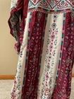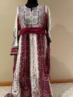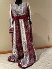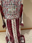 Ladies Maroon very heavy embroidered abaya, with studs Long dress long sleeve with belt. I have two sizes, S (1) M (2) Length : 59" 60" Armpit to armpit: 20" 23" please message me with the size you want.