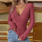 Ladies V-Neck Pullover Jumper Top Long Sleeve Casual Loose Work Party Tops