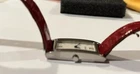 Ladies Vintage Analog Guess Watch, Red Leather Band , Silver tone Case, White Face, New Battery Works Great! Strap shows wear as you can see in photos but definitely wearable. Beautiful red color leather. Case measures approximately 28mm tall by 17mm wide