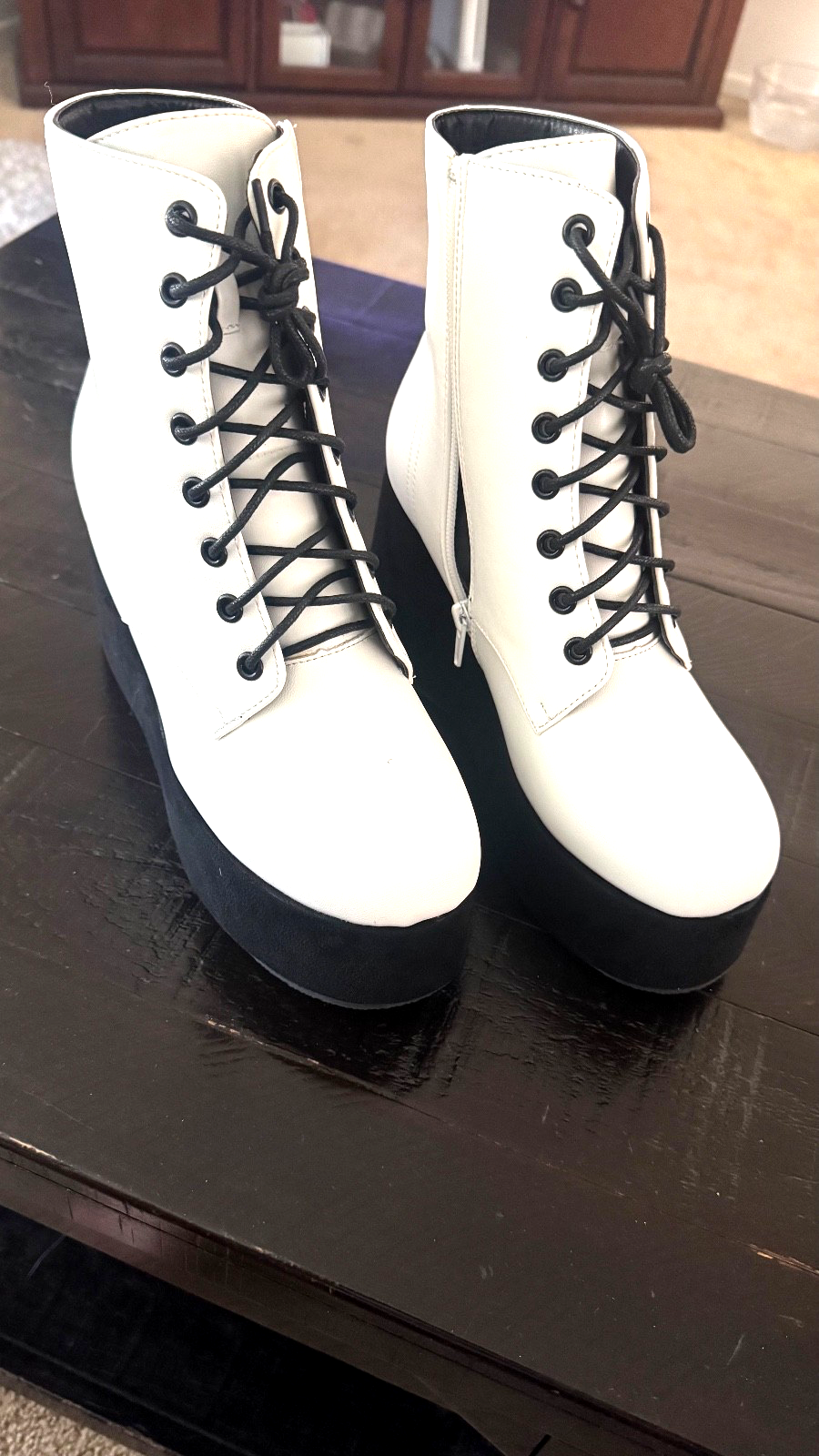 Lady Godiva White Platform Shoes. These shoes are a size 8. They have about a 3.5” to 4” platform. They are brand new and in excellent condition. They will Come shipped in their original box.