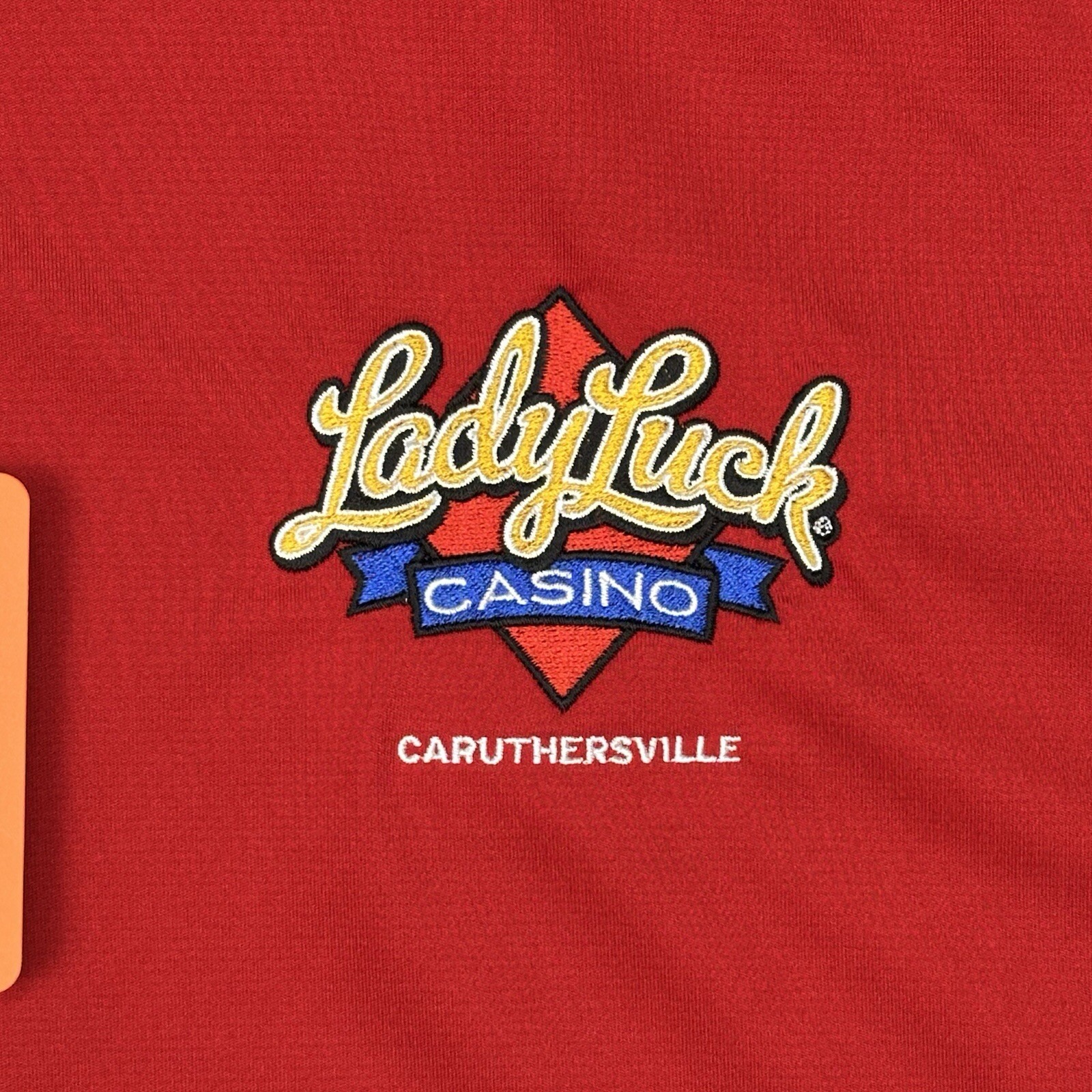 Lady Luck Casino Shirt Womens Large Red 4-Button Polo Logo Caruthersville NWT Please see measurements in photos. I ship next business day, but sometimes same business day and Saturday if order is paid for early enough. Please reach out if you have any questions. I am open to offers! Feel free to check out other items in my store. Thanks!