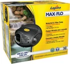 The Laguna Max-Flo 600 Waterfall & Filter Pump circulates water loaded with moderate amounts of solid particles (or solids) and traps the debris that can pollute your pond water — filtering your pond. It can handle solids up to 1/4" in size. Max-Flo is ideal for use with filtration systems and for creating waterfalls and water courses. Easy to install and operate, the pump is completely submersible and engineered to run continuously. Max-Flo pumps use Laguna's next-generation Smart Pump Technology (SPT) that is a major technical advancement to improve pump performance, energy efficiency, and user friendliness. SPT is a self-regulating system that tracks power consumption, hydraulics, and impeller direction to ensure powerful output and energy efficiency, so that only the required amount of power is used to operate the pump efficiently. The pump is powered by a magnetic-driven motor that uses less energy than other pumps. The pump is easy to assemble. The pump is manufactured in Italy and guaranteed for 3 years. Features Strainer cage protects impeller and assures continuous suction 1/4in (6.3 mm) diameter cage openings for solids handling capability Easy-to-use Click-Fit connectors for fast and easy hose connections Unique two-level suction capability, through upper and lower casing, for maximum water flow Pump cage can be easily attached to a fixed surface using the convenient keyhole cutouts, located on the bottom of the pump cage High stability as a result of extremely flat shape (low center of gravity) Ergonomic pump handle for a safe grip and easy transportation