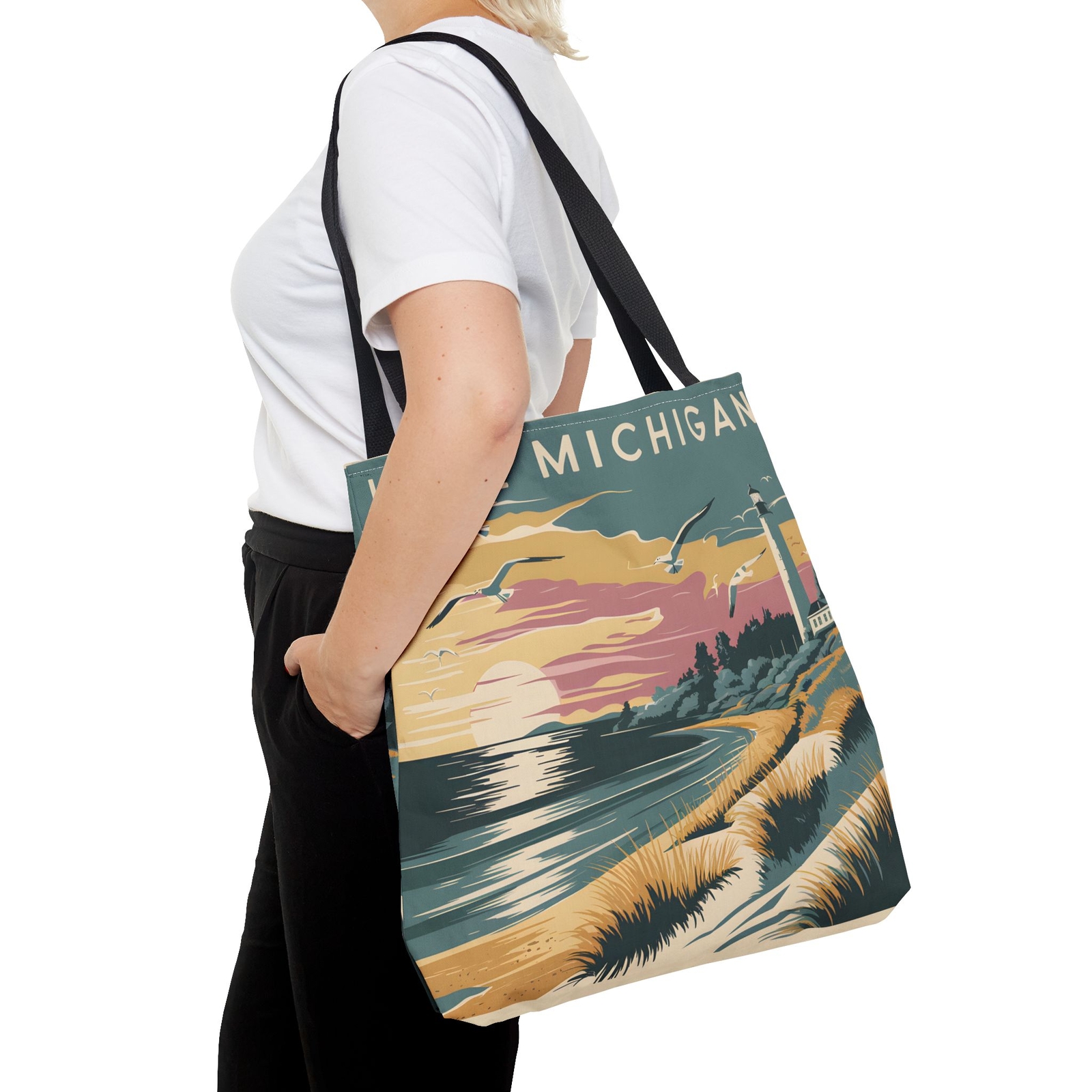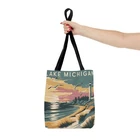 Transform your space with our stunning Lake Michigan All Over Print Poster, showcasing a serene beach scene that captures nature’s beauty. This vibrant design brings the tranquility of the shoreline indoors, making it perfect for any room. Ideal as a thoughtful gift for nature lovers or as a statement piece in your home. Elevate your décor with this eye-catching art print! Add functional perks to an already great design and you get a staple for everyday use. With its interior zippered pocket for added safety, and the adjustable straps for extra comfort, this tote bag has it all. 100% Spun Polyester Available in two sizes: 13''x13'' and 18x18'' Adjustable strap Black interior lining and inner pocket Assembled in the USA from globally sourced parts 13" × 13'' 18" × 18'' Height, in 13.00 18.00 Length, in 13.00 18.00 Width, in 3.00 3.00 Handle length, in 28.74 28.74 Handle width, in 1.00 1.00