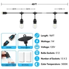 1 Energy-Saving & Long-Lasting LED Outdoor Strings: Creating almost the same ambience but with less energy and longer lifetime is a great feature of these LED outside string lights, extremely reduce your electricity bills compared with incandescent bulb ones. What’s more, the long-lasting lifetime of 25000H provided by these patio hanging lights, greatly decrease the times of replacing and more convenient for your life. You will feel surprised and satisfied as long as you possess it. Weatherproof & Shatterproof & More Safer: Great weatherproof technology of these outdoor cafe string lights allows multiple using scenarios no matter what the weather is, such as hot sun, strong wind, heavy rain, snow or damp. What’s more, these bulbs are plastic material and won’t worry about being shattered or broken, makes these powerful daylight porch lights safer to use and enhances their outdoor applicability. Dimmable Function & Linkable Characteristics: led backyard light strings will be compatible with the most dimmers so that you can create your favorite atmosphere for special occasions by adjusting the brightness. Besides, the heavy duty waterproof string lights have end-to-end connections and can be linkable up to 48 packs, 2304FT long in total, perfect for any length of installation. (Nice tip: Dimmer is NOT included in the package, please purchase separately). 48FT 2 Pack 15 E12 Sockets 3 Spare Bulbs: The 2 pack 96FT outdoor string lights are equipped with 33 high quality LED light bulbs including 3 extra free bulbs in case you ever need to replace, 30 E12 sockets are approved for residential and commercial lighting, plastic bulbs of the dimmable backyard lights are won’t get hot even after being on for many hours. 5000K daylight white bulbs give off bright and clean atmospheres. (Attention Please - Made for working on 110-130v). Wide Application & Easy To Install: These shatterproof outdoor led hanging lights just need several minutes to screw 15 bulbs for each pack of the Edison lights outdoor string, 30 ones in total. They are not only the marvelous decoration for your world which decorate the garden, bistro, pergola, gazebo, etc, but also added festival atmospheres for wedding, birthday, party even ordinary barbecue or dinner. (Warm tips: please screw every bulb tightly enough in order to make sure it comes on).