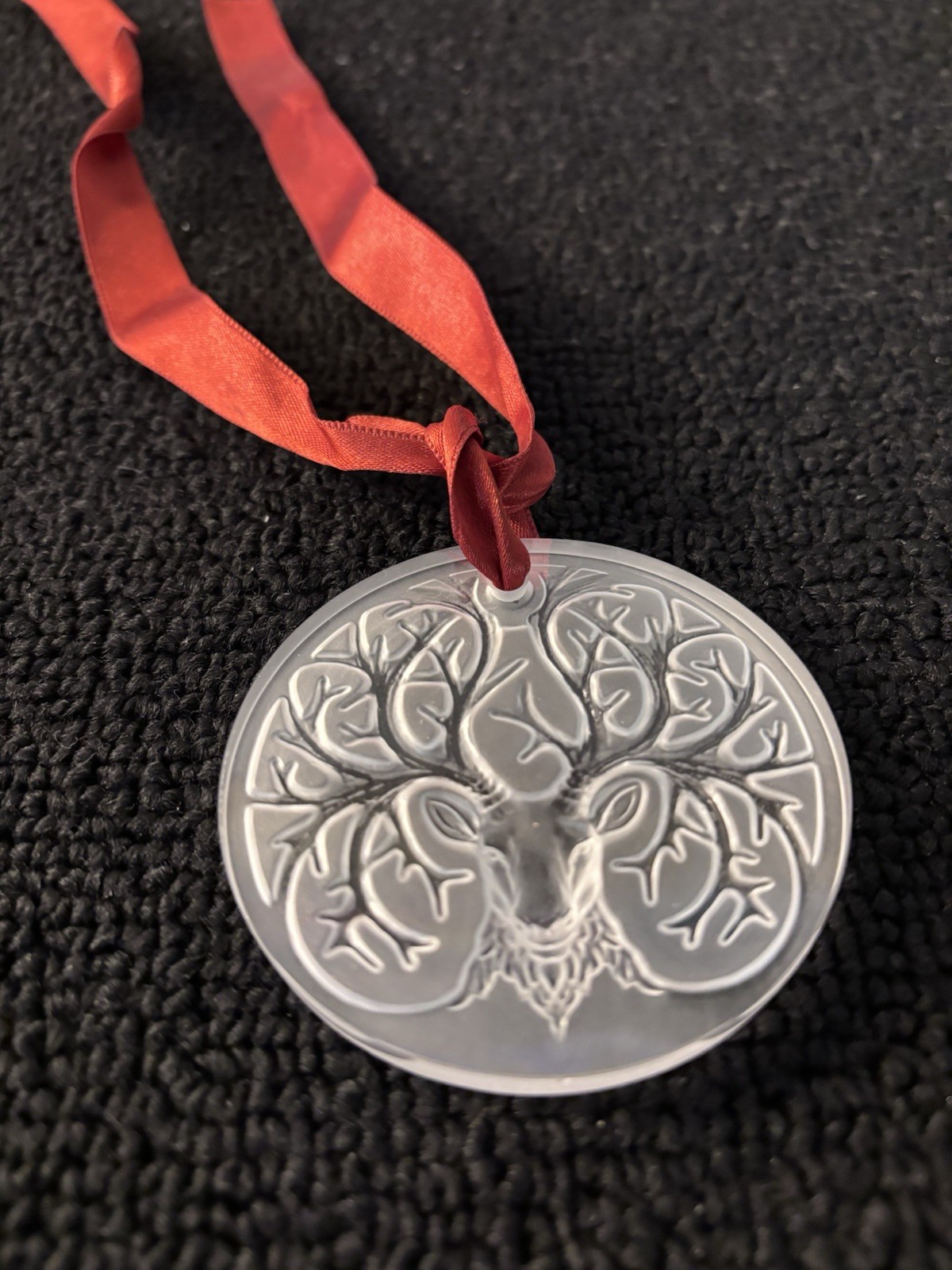 $ 119.0Lalique France 1991 Amber Christmas Crystal Décor Medallion