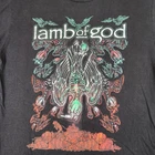 Authentic Lamb of God band t-shirt featuring a striking gothic skeleton design in mint green and coral tones. The artwork showcases an intricate skeletal figure surrounded by mystical elements and creatures. Perfect for metal concerts, rock festivals, or making a bold statement in casual wear. The vintage-style graphic print maintains vibrant colors on a classic black cotton tee. Color: Black Department: Men Type: T-Shirt Fit: Regular Sleeve Length: Short Sleeve Character: Skeleton, Death Angel, Gothic Reaper, Winged Demon, Dark Spirit Pattern: Graphic Print Character Family: Lamb of God, Heavy Metal Bands, Gothic Art, Death Metal, Rock Music Keywords: lamb of god, metal band, skeleton, gothic, rock tee, band merch, concert shirt, heavy metal, graphic tee, vintage style, music merchandise