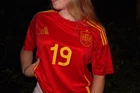 Spanish football jersey for the 24/25 season, bearing the number 24 and the name "Lamine Yamal". Made in Spain by adidas, this jersey is perfect for soccer fans who want to show their support for their favorite team. Ideal for passionate sports fans, this high quality jersey is a must for any sports wardrobe.