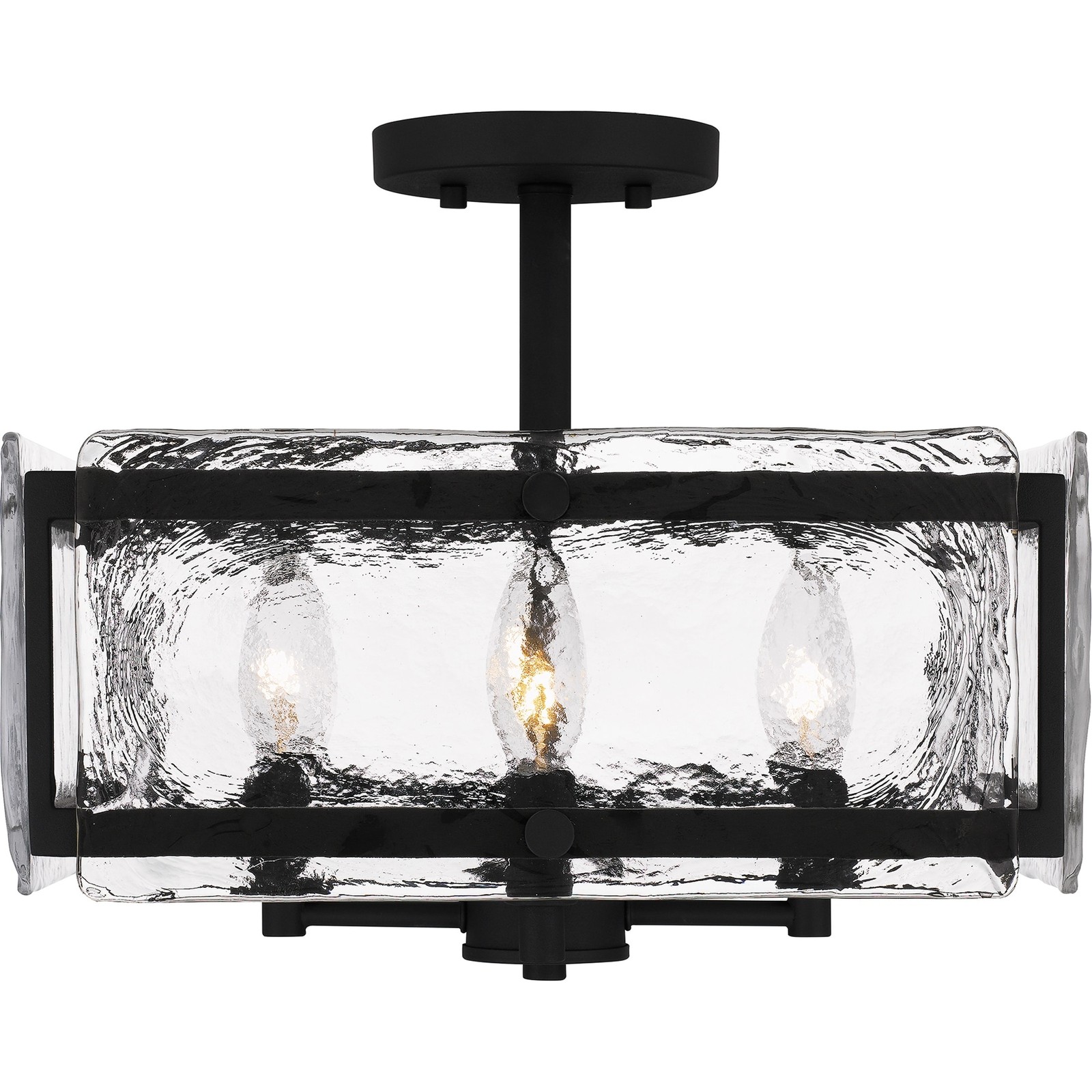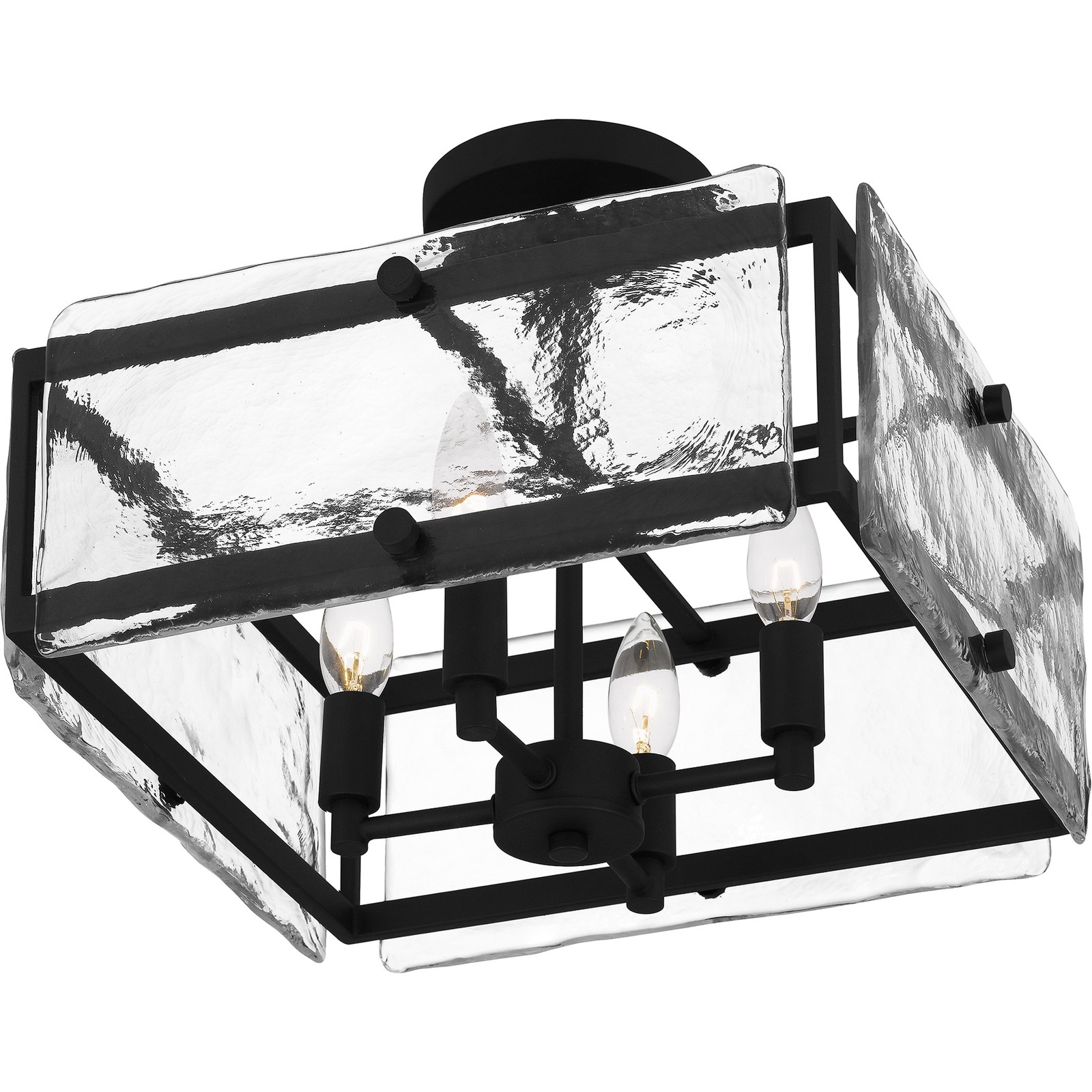 Coastal meets industrial. The Lancer semi-flush mount features a square silhouette with rectangular clear glass panels and round knob accent pieces. Choose from either matte black or mottled silver for a one-of-a-kind statement piece in any foyer, bathroom, hallway or office. Free Shipping Over $49.99* Details Lancer 4-Light Earth Black Semi-Flush Mount - Earth Black Product Description: Coastal meets industrial. The Lancer semi-flush mount features a square silhouette with rectangular clear glass panels and round knob accent pieces. Choose from either matte black or mottled silver for a one-of-a-kind statement piece in any foyer, bathroom, hallway or office.