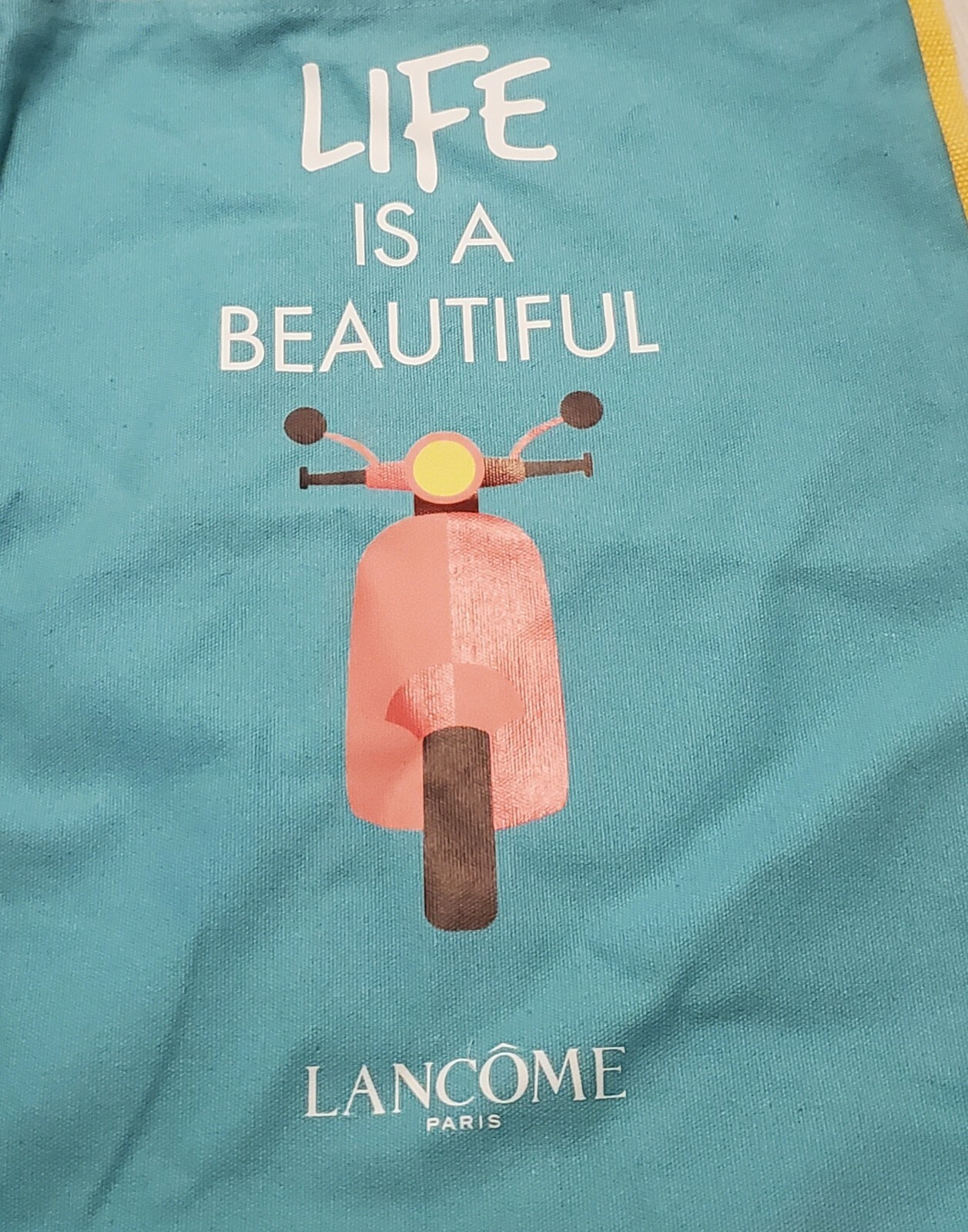 Lancome Life is a Beautiful Ride Canvas Tote Turquoise Bag 14”x15.25”x1.75”. Cute bag perfect for Summer outings. Very good Pre-owned condition.