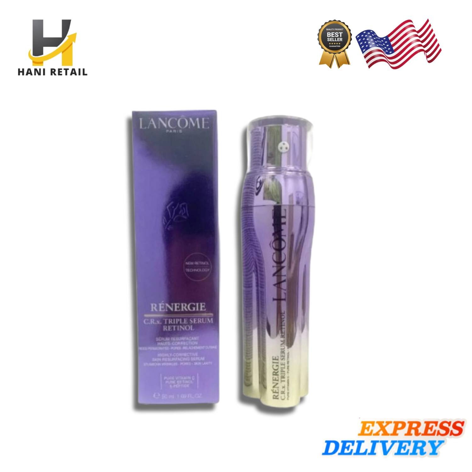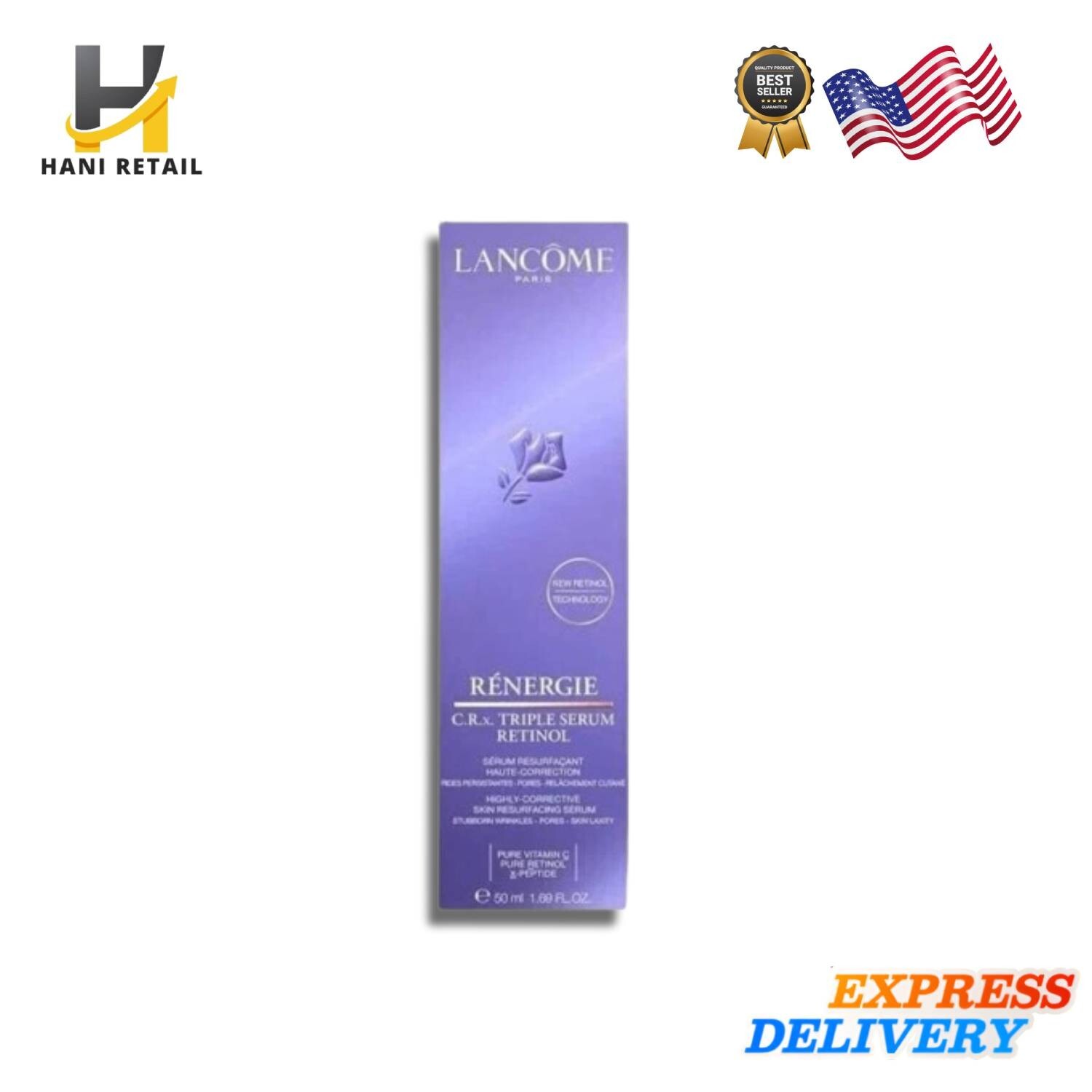 Lancome Renergie C.R.x Triple Serum RETINOL 1.7 oz NIB Sealed 50mL PACK OF 2 Lancôme Rénergie H.C.F. Triple Serum 1.7oz / 50ml – NEW & SEALED Discover Lancôme’s powerful anti-aging serum with a triple blend of Hyaluronic Acid, Vitamin C + Niacinamide, and Ferulic Acid. Targets wrinkles, dark spots & loss of firmness for visibly smoother, radiant skin. New in Box Factory Sealed Full Size – 50ml / 1.7oz Perfect for all skin types. Results you can see and feel