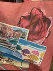 Lancome pink summer postcard print fully lined tote bag