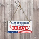 Introducing our versatile and stylish Land Of The Free Because Of The Brave, the perfect blend of style and sophistication to elevate your home or workplace. Our 5x10 Hanging Sign range is the perfect choice for your home, workplace or business. Each sign is attached with rustic twine, providing a charming and versatile accent for any space. Our curated designs effortlessly complement a variety of styles, from rustic farmhouse or Modern Chic, to simple and functional options. Choose from our diverse range of designs to personalize your space. Whether it's a warm welcome at the entrance, a motivational quote for your workspace, or a playful touch for the kids' room, our Hanging Wall or Door Signs are the perfect way to express your unique style.