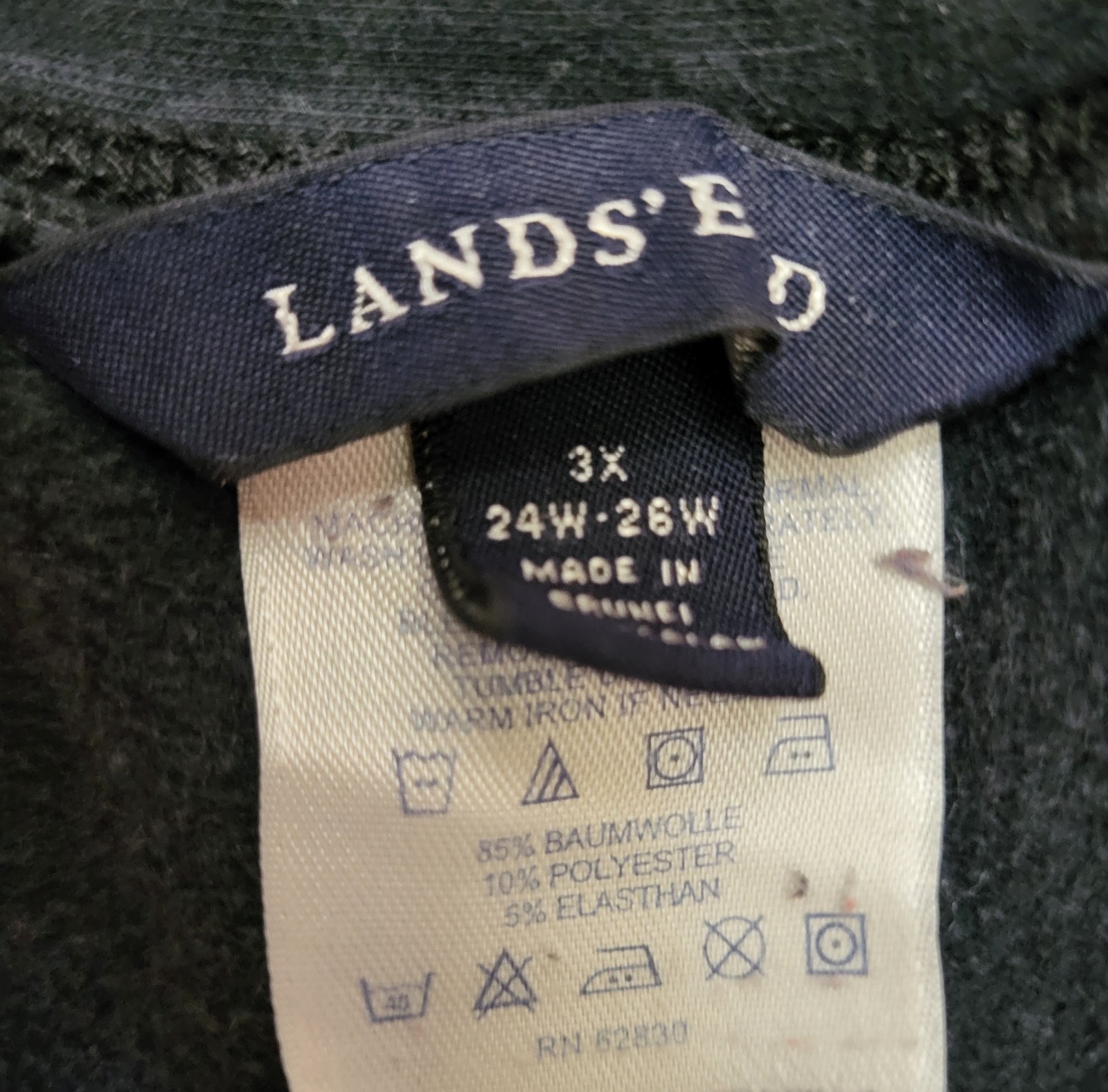 The Lands' End Crop Capri Pants in size 3X are a versatile and comfortable option for women who wear sizes 24W-26W. These black stretch pull-on pants feature a solid color and a straight leg style, making them perfect for casual or travel occasions. The polyester and cotton blend material ensures easy care with machine washability, while the knit fabric adds a touch of stretch for added comfort. With a regular fit and a 20.5-inch inseam, these capri pants are ideal for the summer, fall, and spring seasons, making them a stylish choice for a beach day, city outing, or sports activity.