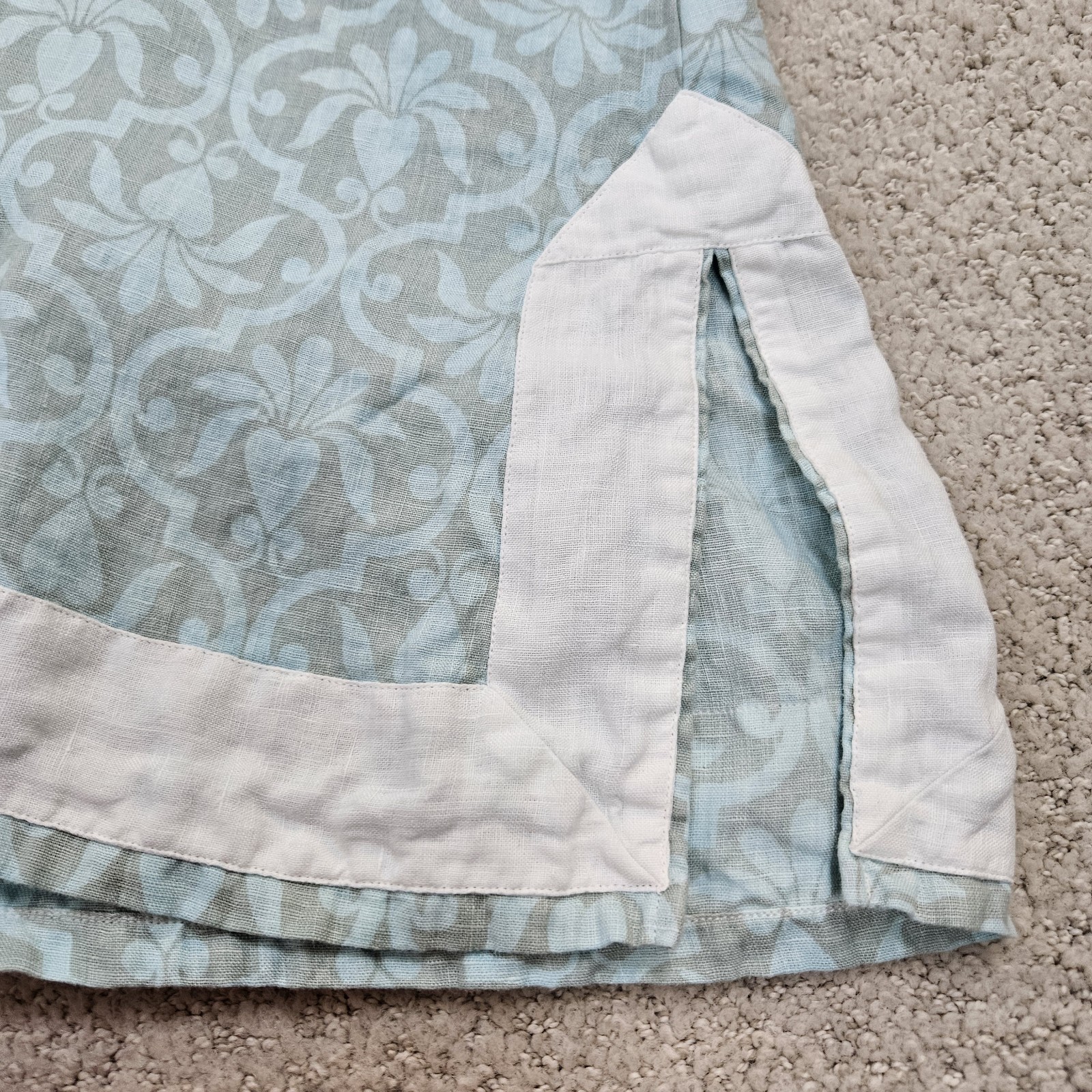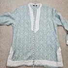 Lands End Tunic 100% Linen Womens Large 14/16 Long Sleeve Split V Neck Blue White Preppy Vacation Beach Travel Summer Spring Fall Coastal Good pre-owned condition. Please see photos for measurements. G