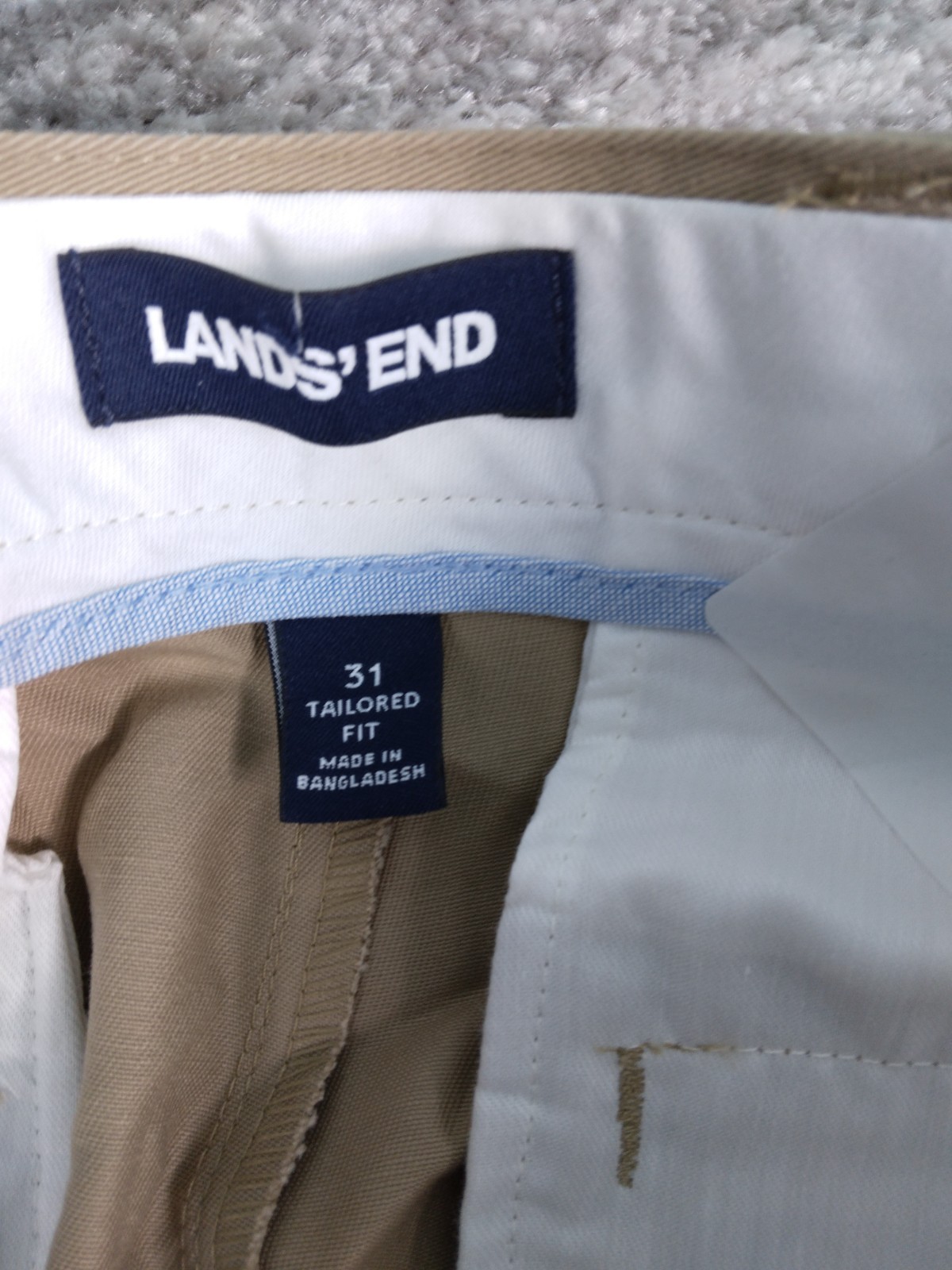 Lands' End Men's Pants 31 Khaki Tailored Fit No Iron Chino 31x29 Cuffed The product is a pair of Lands' End Men's Chino Pants. These pants are designed for comfort and features a tailored fit through hip and thigh, sits at waist and tapers slightly from knee to leg opening. Made from 100% cotton, they are machine washable and suitable for casual or business occasions. The pants have a zip closure and belt loops, making them a versatile and practical addition to any man's wardrobe. Condition: New without Tags Color: Brown Size: 31x29 Cuffed Tag may be cut. Please see measurements in photos, and compare to your favorite garment before purchasing. All orders ships within one business day of payment. Free returns within 30 days are accepted. Thanks for shopping