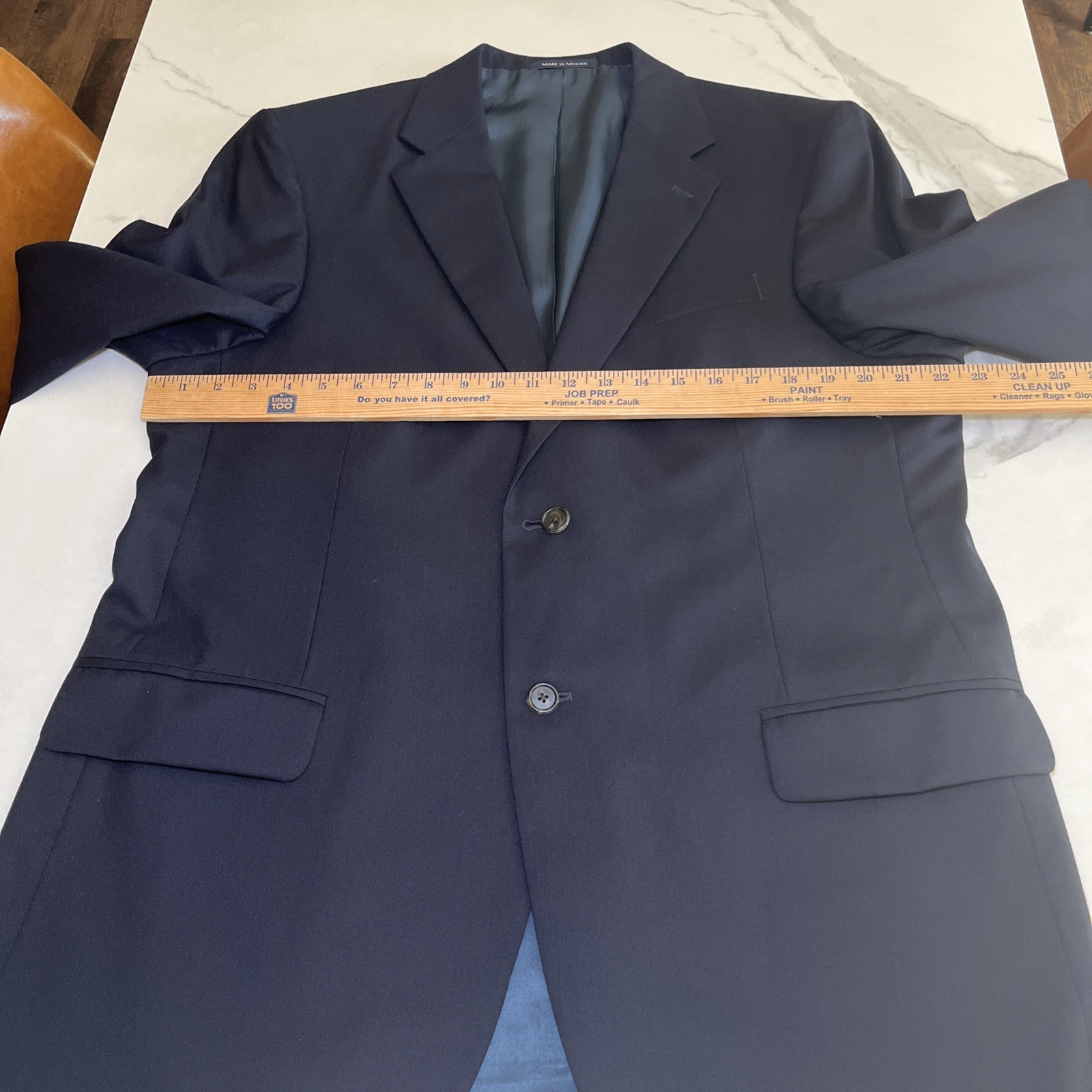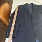 The Lands End Navy Blue Blazer is a classic and versatile piece for men's formal and business attire. Made from 100% wool, this blazer features a two-button front closure, single-breasted design, and a solid blue color. The regular length and single vented back make it suitable for casual and formal occasions, while the acetate lining adds a touch of luxury. With its timeless style and high-quality construction, this blazer is a wardrobe staple for any man looking for a sophisticated and polished look. Excellent condition. See photos for measurements.