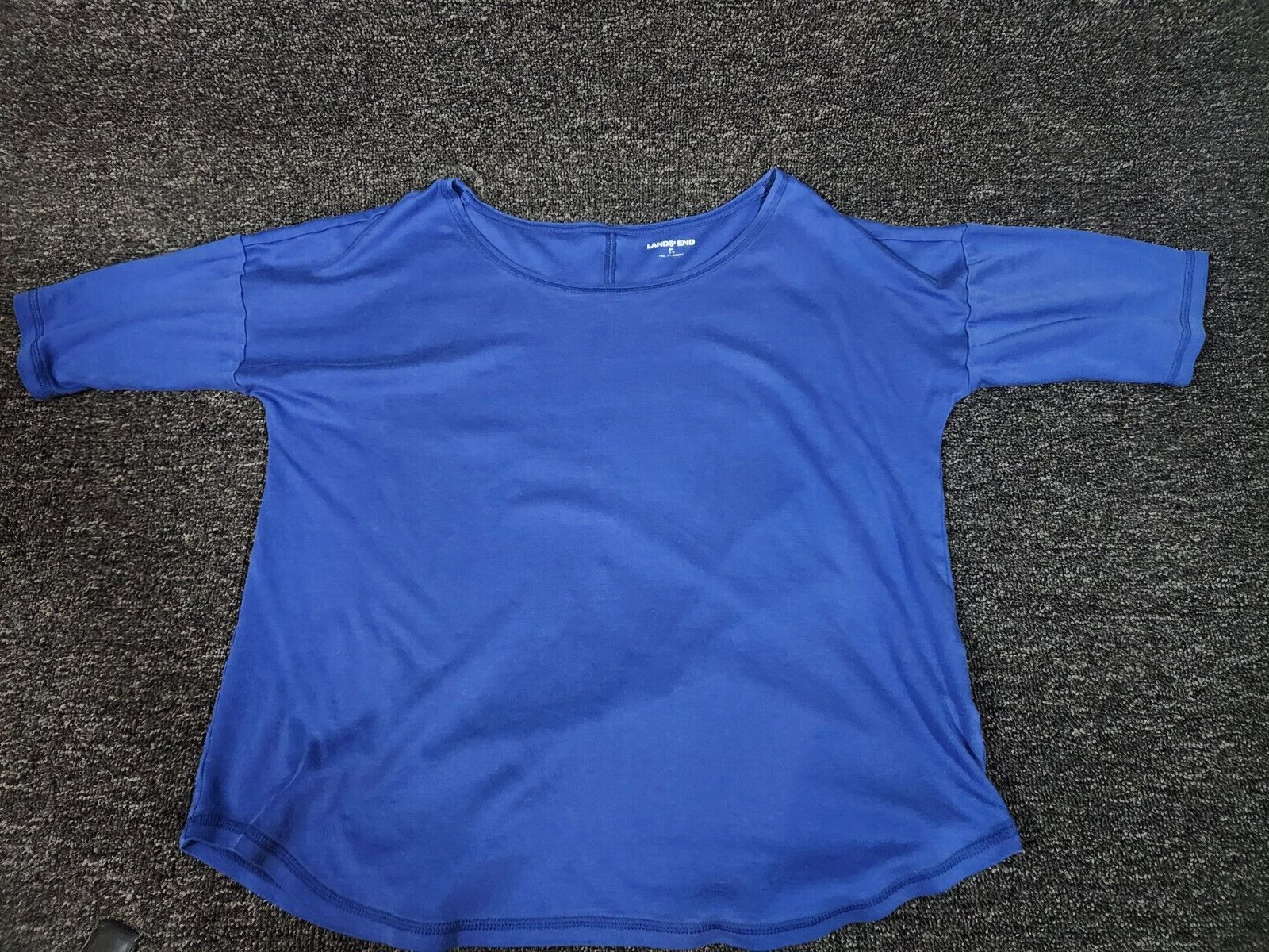 Lands End Okeo-Tex Womens Top Blouse Short Sleeve Blue Size M No stains, rips, or tears. For measurements refer to pictures. If you have any questions please message me.