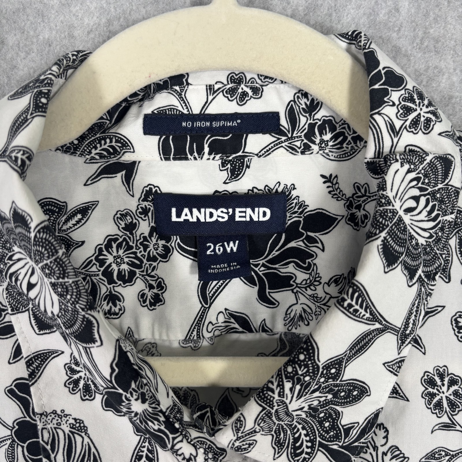 Lands End Shirt 26 Black White Floral No Iron Supima Cotton Tunic Casual Thin Floral Flowers Bloom Button Up Collar Long Sleeve Classic Casual EXCELLENT Pre-owned condition: minimal to no signs of wear, no stains or holes SKU 8189 **Please see all pictures for full item condition and details** - Ships Same/Next Day, Professional Seller, Offers Welcome, Like or watch for price drops - Item in photos is exact item you will receive - I list new items daily, be sure to browse my store/closet for more items - Bundle pricing and combined shipping available for additional savings - Feel free to send a message