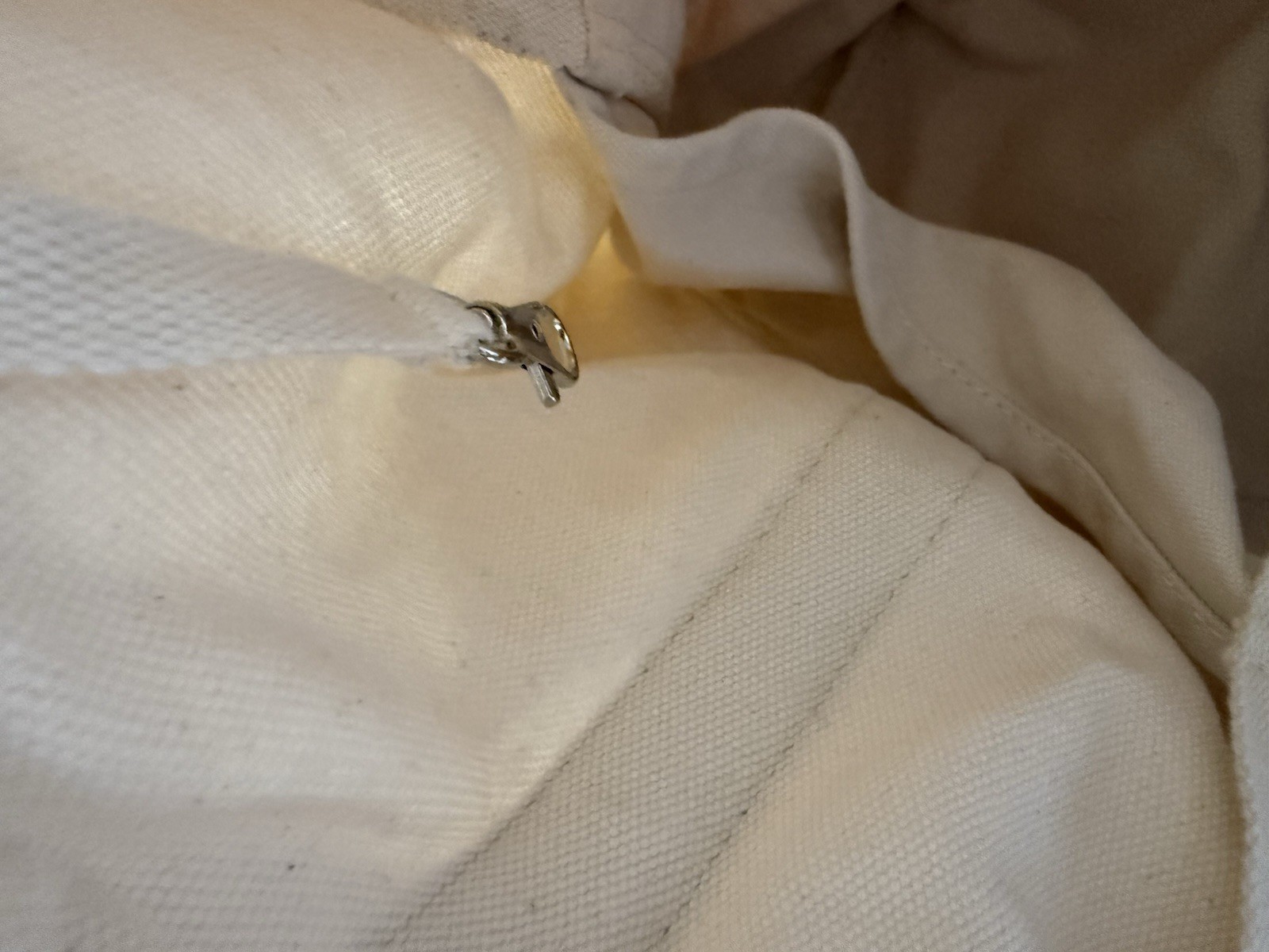 The Lands' End TOTE Large Zip Top in Natural/Silver is a durable and spacious canvas tote bag perfect for travel and casual occasions. Featuring a solid pattern with a zip closure, this extra-large tote is made of cotton with a canvas lining. The exterior color scheme of cream and silver adds a touch of elegance, while the canvas handles provide comfort and durability. With multiple pockets for organization, this tote from Lands' End is a practical and stylish choice for both men and women.