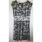 Elevate your workwear or business wardrobe with this beautiful Lands' End A-line dress. The black and white floral pattern adds a touch of feminine charm to the classic scoop neck and cap sleeves. The knee-length dress is made of a comfortable cotton, modal, and spandex knit fabric that hugs your curves and flows elegantly. The dress is machine washable for easy care and features a pullover closure. This versatile dress is perfect for summer, fall, and spring seasons. The dress is lined and features an A-line silhouette that flatters all body types. The dress is available in plus size and is perfect for any occasion, be it a casual outing or a formal event.