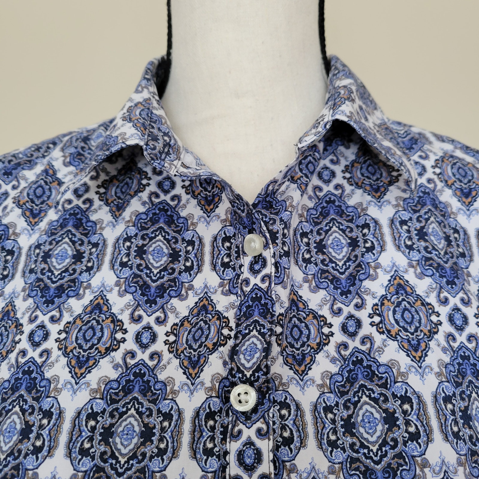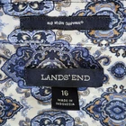 EUC Lands' End Women's 16 Button Front Long Sleeve No Iron Collared Shirt Blouse Size-16 See Measurements For Accurate Fit Color-Blue, White, Brown Medallion Print 8 Button Front (Extra Button Included) Button Cuff Pointed Collar No Iron 100% Supima Cotton Machine Wash/Tumble Dry Measurements Laying Flat Approximate: Shoulder To Shoulder-17" Armpit To Armpit-23" Sleeve-24" Shoulder Seam To Cuff Length-27" Excellent Pre-owned Condition. No Holes, Stains, Tears, Rips, Fading. No Wear Noticed. Every Effort Has Been Made To Accurately Describe & Photograph This Item. Some Colors May Vary Depending On Lighting & Device Used To View. Please Reach Out If You Have Questions Prior To Purchase. I Am Happy To Help. Shipping From A Smoke & Pet Free Facility. USPS Ground Advantage