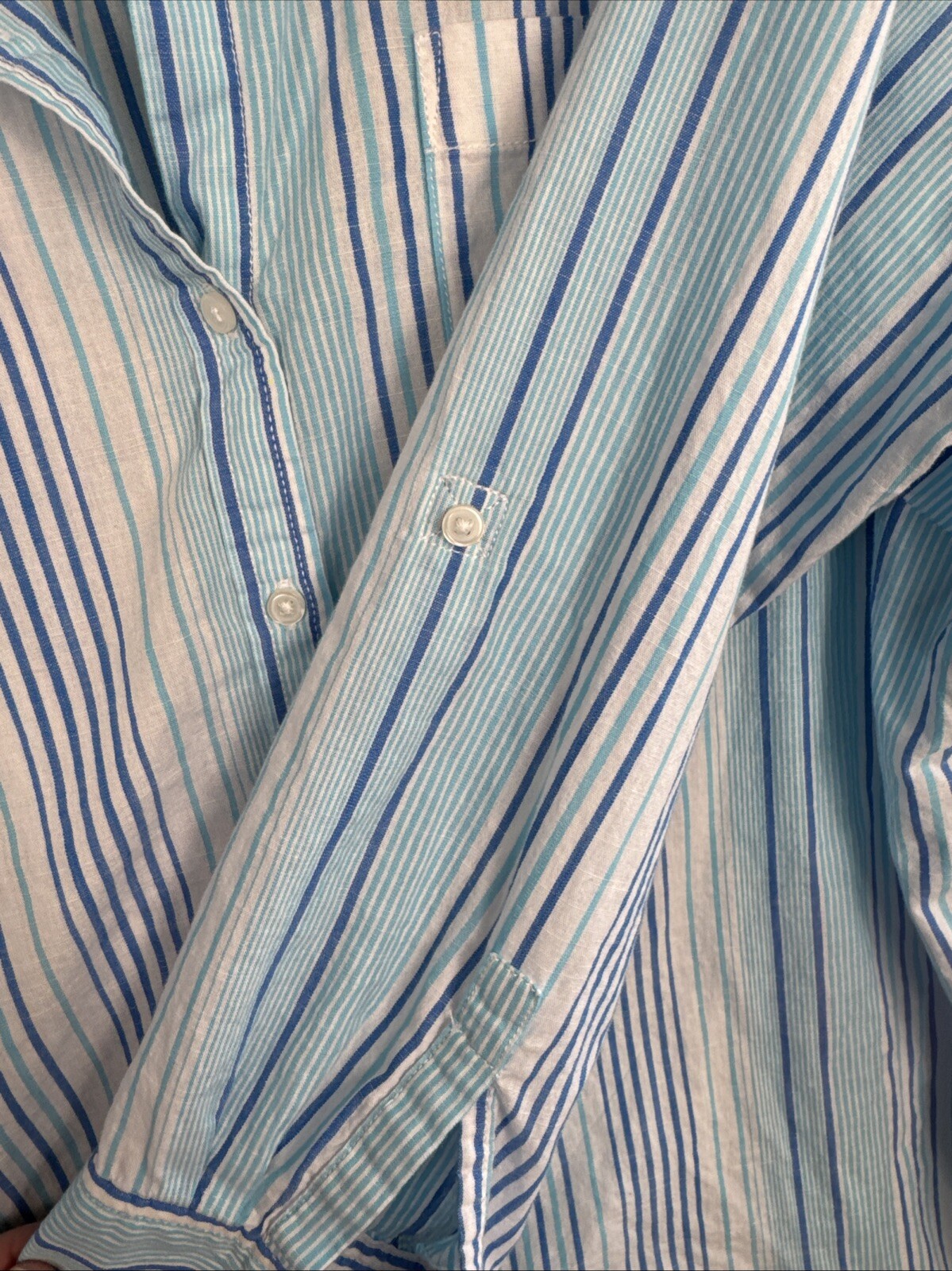 Lands End Womens 3X Button Up Shirt Stripe Casual Nautical Summer Versatile READ READ *** small spot at the back of the sleeve. It is covered and not visible when you roll the sleeve. Price is reflective of flaw.