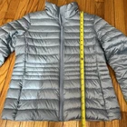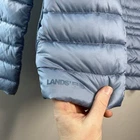 Lands End Blue Women's Wanderweight Packable Down Jacket Size XS Minor staining. it does not come with the little bag to pack the jacket into 800 fill power HyperDry down provides warmth without the weight Slightly shorter length, hits at hips Water-resistant fabric helps shed the wet stuff Packable into its own right hand pocket for easy travel Flattering quilt lines enhance shape Full zip with internal storm flap Full stand collar, plus zippered pockets c308