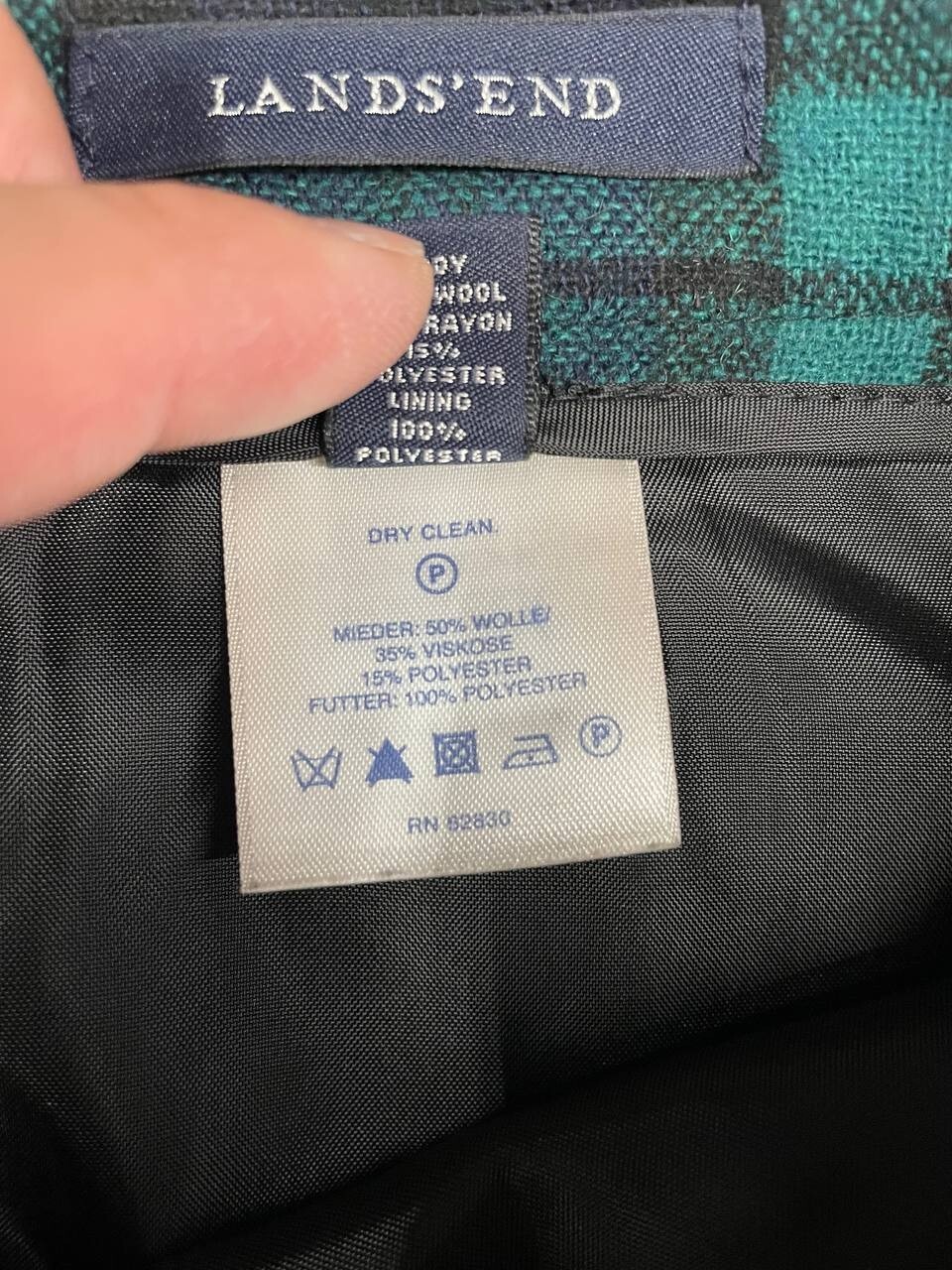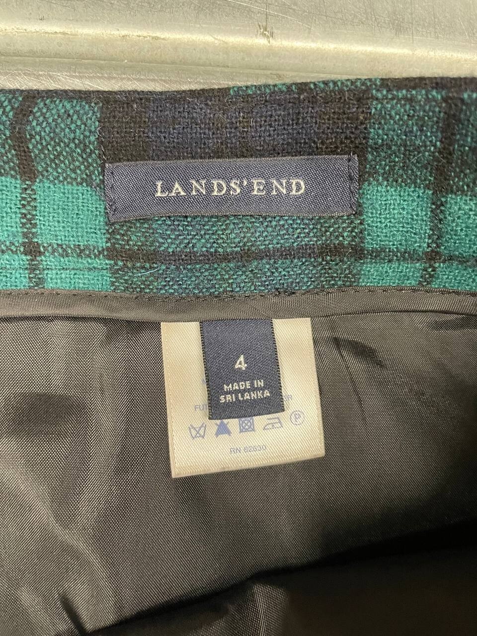 Lands End Plaid Skirt Womens 4 Green Wool Blend Knee Length Good condition, please see pic for details C12
